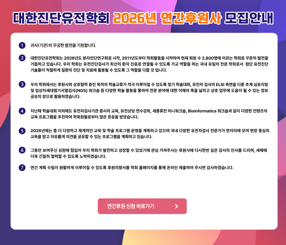 대한진단유전학회 2026년 연간후원 모집 관련 안내